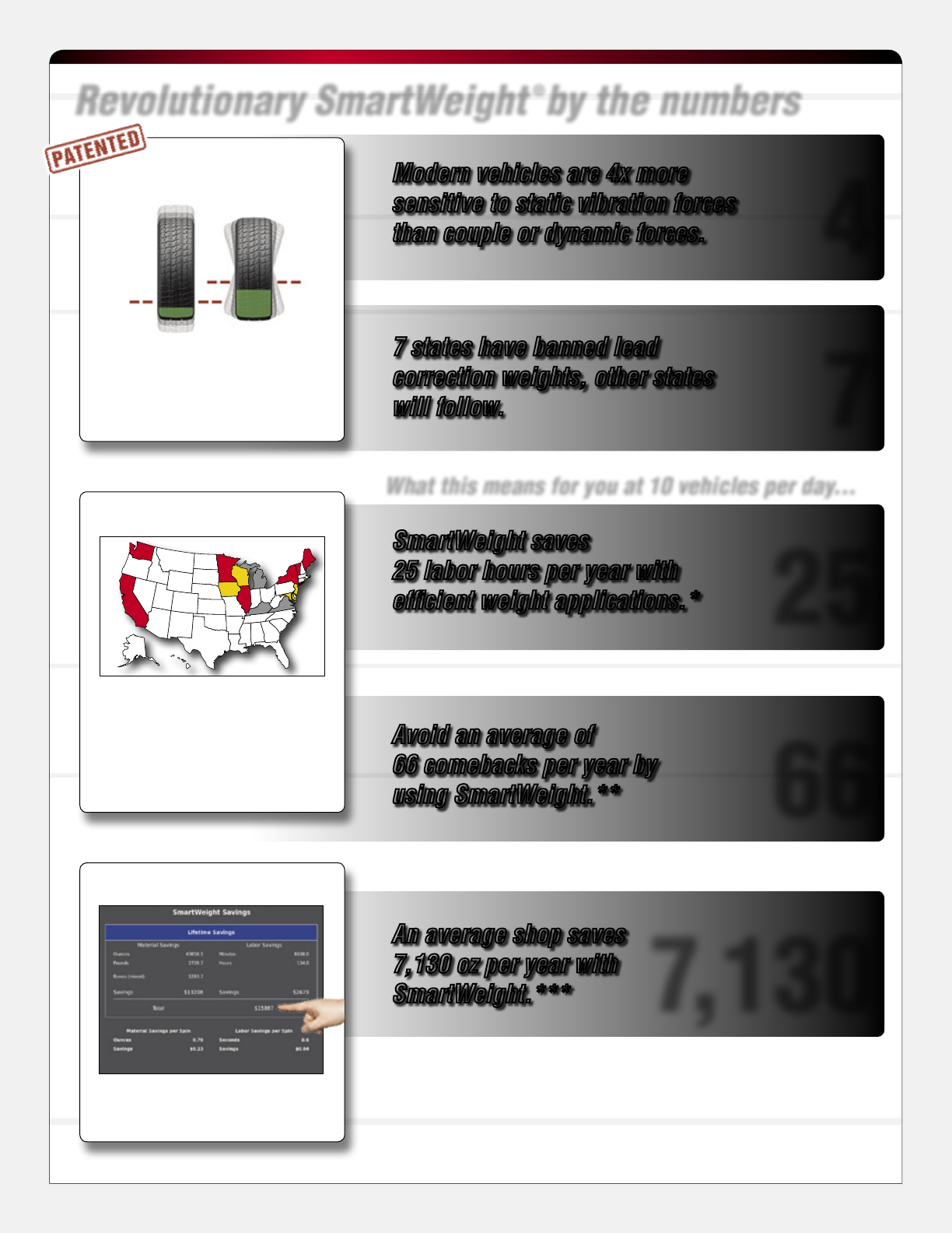 using SmartWeight versus the typical two-weight application of standard balancers.